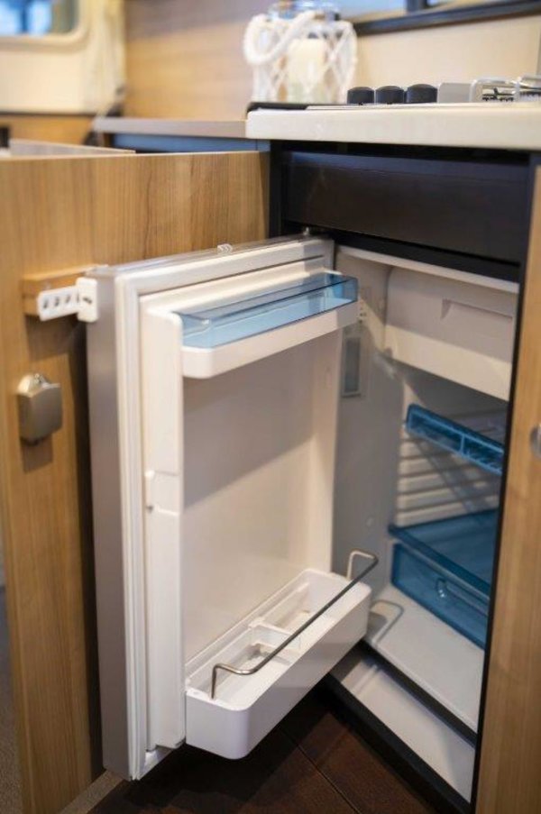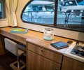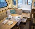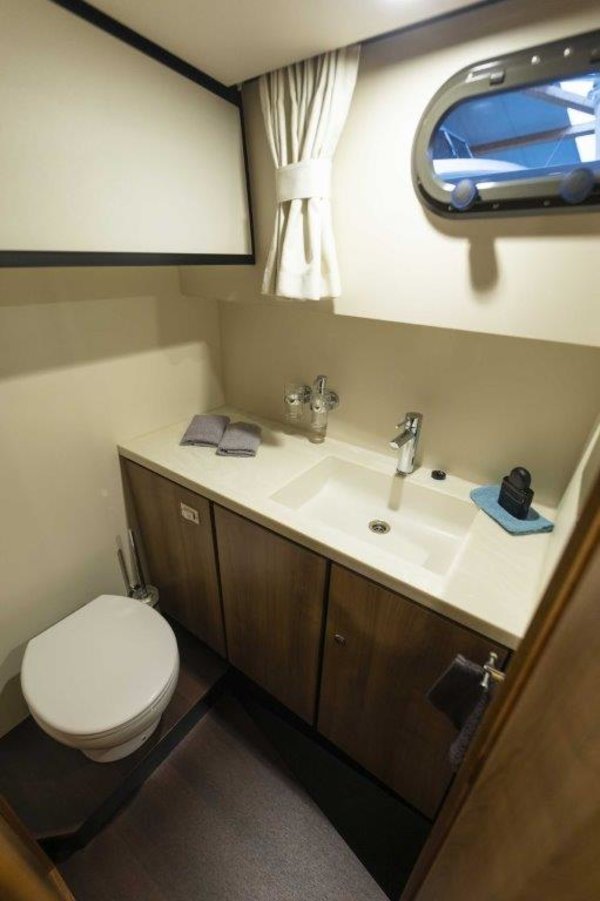 In the front cabin is a double bed with a shower room and a separate bathroom with electric on-board toilet and sink.