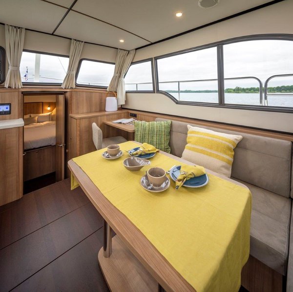 On deck is spacious seating on the fixed bench with fine cushions and the aft deck is completely lockable around the bank with an extra large convertible.