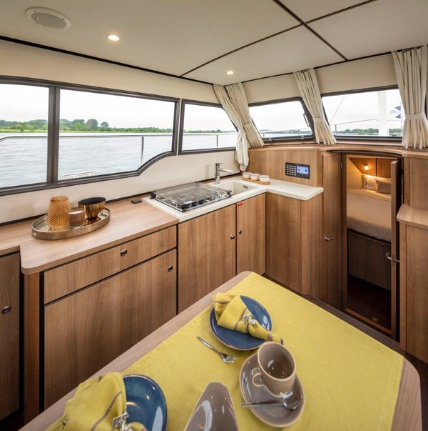 This luxury Linssen Grand Sturdy 35.0 guarantees a wonderful sailing holiday. The Linssen GS 35.0 is a compact yacht with two cabins, each with a double bed and two bathrooms and two electric toilets and one shower.