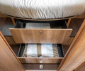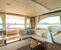 In the cockpit is a nice spacious sofa and a dining table. The open cockpit has a continuous long-top with atmospheric lighting. The cockpit can be completely closed to an extension of the salon.