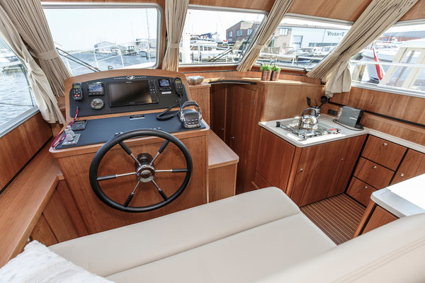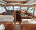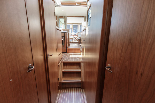 The steering position is equipped with a complete navigation package, a two-person steering bench and a full-roof sliding roof, which gives the feeling of sitting outside. This 40.0 Sedan from Linssen Yachts also has particularly fine sailing characteristics.